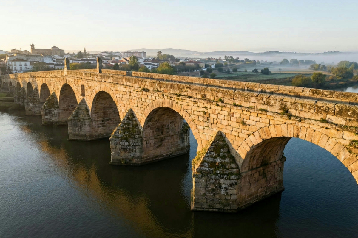Costruito durante il regno dell’imperatore Augusto, il Puente Romano fu progettato per facilitare il collegamento tra le diverse parti dell’Impero Romano. La sua realizzazione avvenne in un’epoca in cui Mérida, conosciuta come Emerita Augusta, era una fiorente colonia romana. Oltre a servire come via di comunicazione, il ponte aveva anche una funzione strategica, permettendo il trasporto di truppe e rifornimenti attraverso il fiume Guadiana. La scelta del luogo non fu casuale; il fiume rappresentava un’importante via d’acqua e il ponte garantiva l’accesso a entrambe le sponde, favorendo così lo sviluppo economico e commerciale della regione.